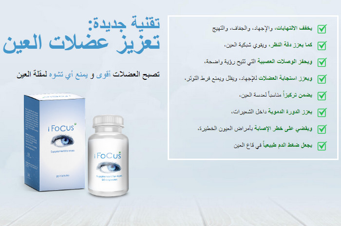 هل تفكر بالفعل في أين يمكنكشراء مجمع لتحسين الرؤية iFocus؟ لا يوجد شيء أسهل – اطلبه في متجرنا عبر الإنترنت. الدواء ميسور التكلفة وجيد جدًا ، كما سترى قريبًا في مثالك الخاص.